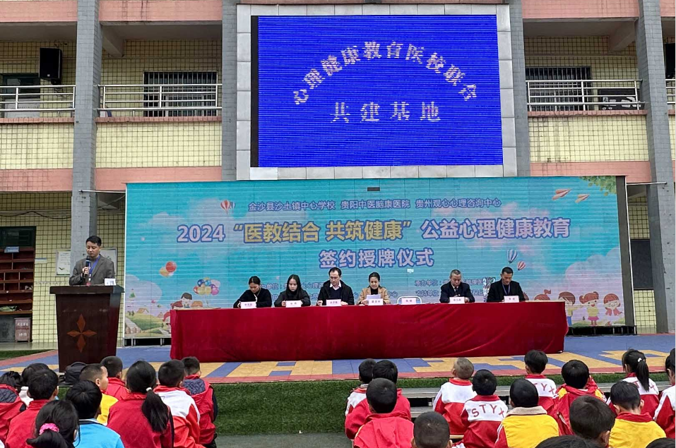为进一步加强学校的心理健康工作,切实保障师生的身心健康,并及时贯彻实施全国学生心理健康工作咨询委员会的倡议,全面优化全校师生的健康工作与学习环境。3月18日下午,金沙县沙土镇中心学校与贵阳中医脑康医院观心心理咨询中心举行“医教结合 共筑健康”公益心理健康服务项目签约授牌仪式,并成立“心理健康教育医校结合共建基地”,仪式在金沙县沙土镇中心学校举行。仪式现场参加本次仪式的领导有:金沙县沙土镇中心学校熊俊校长、曾津副校长、贵州省联合慈善医疗援助中心肖秀主任、李茂应主任、贵阳中医脑康医院曹旻昕院长、贵州观心心理咨询中心代表龙正来老师、众恒助学中心创始人余太湖先生以及沙土镇中心学校全体师生。