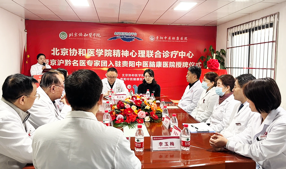 2025年3月16日,贵阳中医脑康医院迎来了一个重要的历史时刻——北京协和医学院精神心理联合诊疗中心授牌仪式在此隆重举行。此次活动标志着贵阳中医脑康医院正式加入全科医学协作平台,成为北京协和医学院精神心理联合诊疗中心的协作中心,开启了医院精神心理学科建设的新篇章。此次授牌仪式由北京协和医学院全科医学协作平台牵头,贵阳中医脑康医院承办,旨在践行院士专家倡议,推动全科医学协作平台的建设,精准帮扶基层医院,提升区域医疗技术水平,改善民众就医体验。